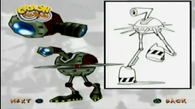 Sembra che i Camera-bot spinosi dovessero apparire anche in questo gioco e addirittura con le gambe. Ciò lo dimostra questa concept art. Non sappiamo però dove dovessero essere relocati, ma si può presupporre nelle vette innevate dell'iceberg del Laboratorio di ghiaccio. Ciò comunque non toglie che questo nemico dovesse essere una nuova variante del Camera-bot.