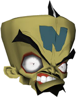 Una testa 3D di una delle tante versioni orribili del Dr. Cortex