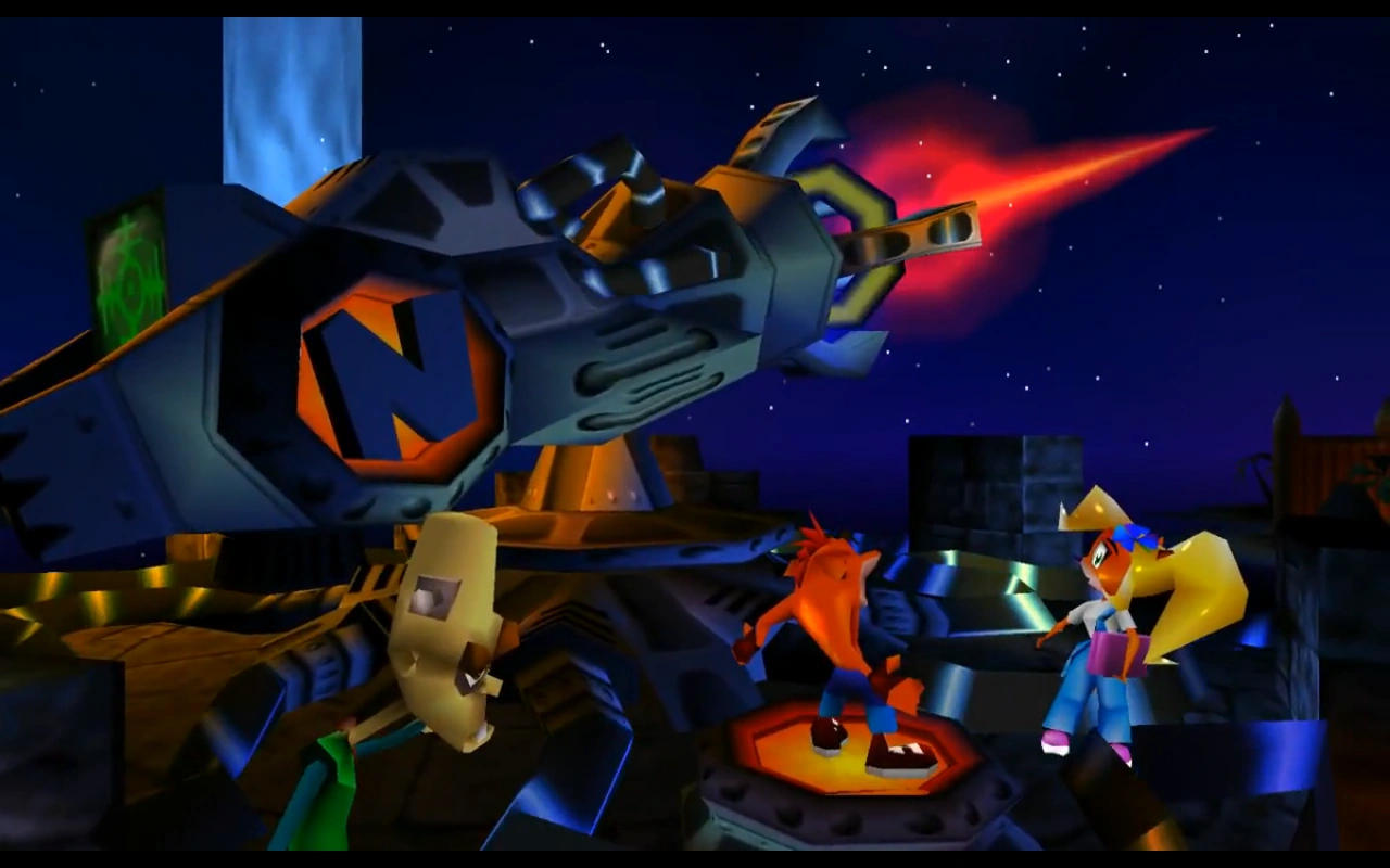 Crash e Coco osservano il raggio sprigionato dal Laser di N. Brio.