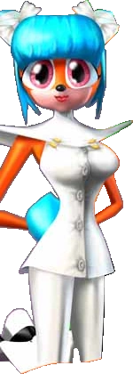 Megumi tem cabelo e rabo azul-celeste, junto com olhos laranja.Seu traje branco se assemelha ao de um médico. Ela é muitas vezes visto carregando um grande guarda-chuva listrado branco e azul celeste.