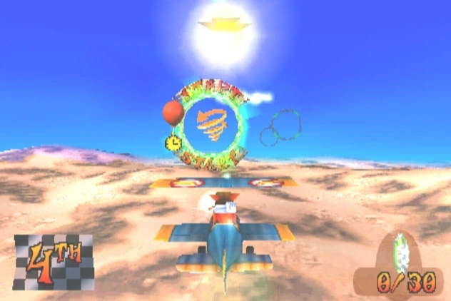 Neste nível, Crash deve voar através de uma série de anéis. Se o jogador gira enquanto viaja através dos anéis, eles obterão um impulso de grande velocidade e o escape do avião ficará roxo. Há duas gemas e uma relíquia a ganhar neste nível. A primeira gema é ganha ganhando a corrida e a segunda é conquistada pela quebra de todas as caixas. Numa atualização do remake Crash Bandicoot: N. Sane Trilogy, este nível não é mais exclusivo para Crash. Coco também pode participar deste nível usando seu avião.