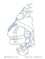 Вело - это могущественный император, которому подвластны тысячи существ (большинство из которых похожи на маленьких гоблинов), а планета, на вершине которой находится его Колизей, по форме напоминает его же голову, что только подчеркивает, насколько он эгоистичен. Подчинённые Вело постоянно нуждаются в развлечениях и по-этому, когда легенды гоночных картов, в лице Крэша и его друзей, достают ушей Вело, он немедленно перемещает их к себе на свой Галактический Картодром. Сообщив похищенным, что при отказе участия в чемпионате, их планета будет уничтожена, император ставит героев в безвыходное положение. В конце концов, когда все подчинённые Вело постепенно терпят поражение в гонках, Вело раскрывает то, что является Галактическим Чемпионом. Начинается финальная гонка один на один против самого императора.