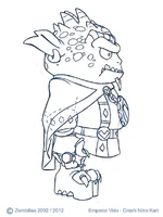 Император Вело - это самоуверенное и мерзкое существо, как в плане внешности, так и характера. Достаточно вспыльчив, не всегда способен контролировать себя в гневе. Когда настоящий Вело был разоблачен, этот персонаж предстает нам совершенно в неожиданном виде. Мы видим импульсивного, переполненного амбициями коротышку, что только придаёт ему сходства с Нео Кортексом.