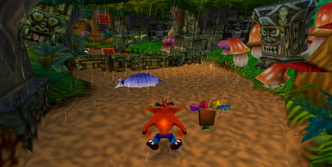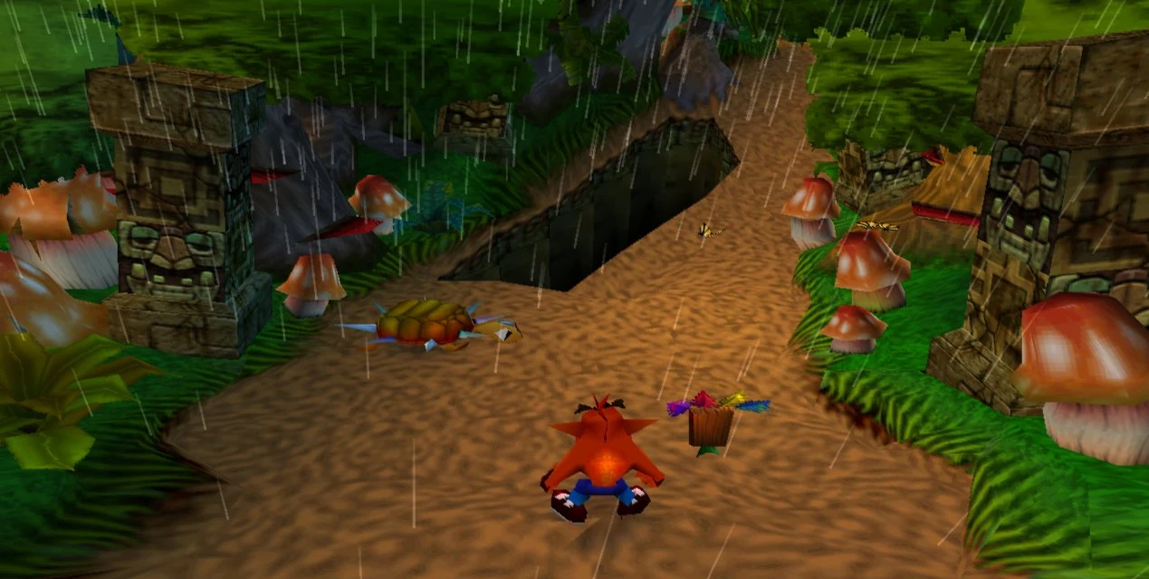 Уровень представляет собой лесную тропинку, где Крэша, как всегда, ожидают разнообразные враги и ямы в качестве препятствий. Погода на уровне, судя по всему, пасмурная, о чём свидетельствует сильный дождь. Враги здесь достаточно лёгкие. Сперва идут синие броненосцы, которые уничтожаются вращением. Потом появляются черепахи с шипами, которые служат им своего рода защитой: Крэш не сможет уничтожить их с помощью вращения. Чтобы победить этих черепах нужно прыгнуть им на панцырь. После этого панцирь переворачивается и черепаха вместе с шипами прячется внутри него. Только тогда её можно уничтожить вращением.