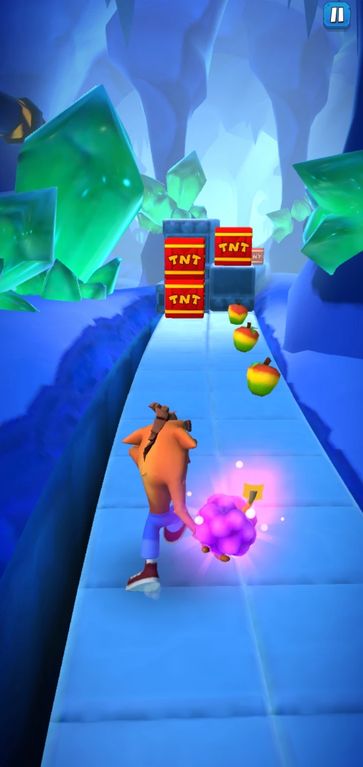"Purple Boom Berries smash crates and trigger buttons ahead of you or in different lanes."
