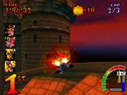 - The track can be compared to the Crash Nitro Kart race track Clockwork Wumpa as they both take place inside a castle. Both tracks have tight corners, and they both contain ramps.