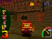 - The track can be compared to the Crash Nitro Kart race track Clockwork Wumpa as they both take place inside a castle. Both tracks have tight corners, and they both contain ramps.