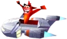 Promotional image of the Japanese Crash mascot suit holding the jet board