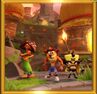 Illustration of Crash fighting the Komodo Brothers from the Japanese strategy guide