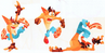 A set of 2001 Crash and Spyro kid's meal toys from Carl's Jr, an American fast food chain