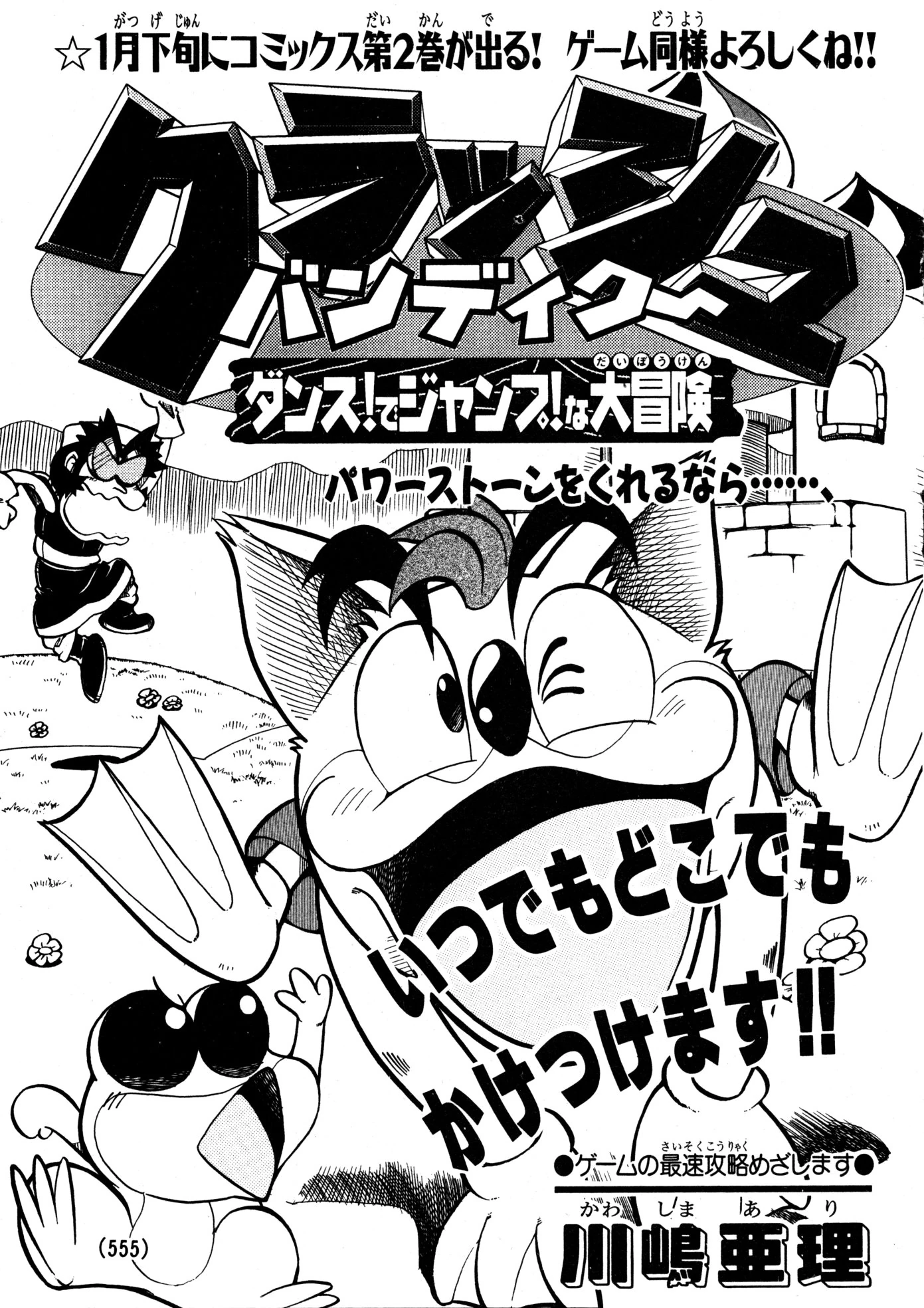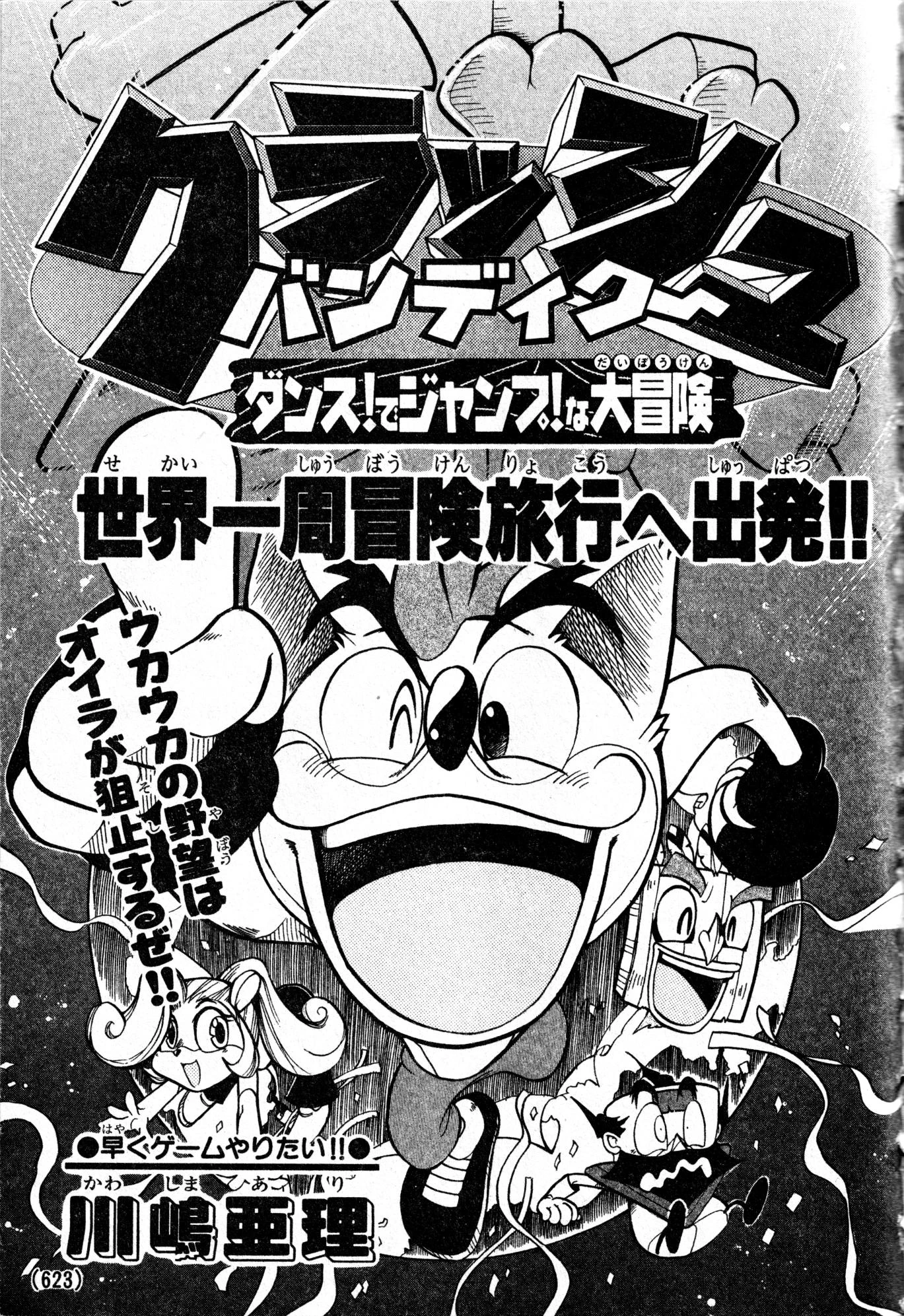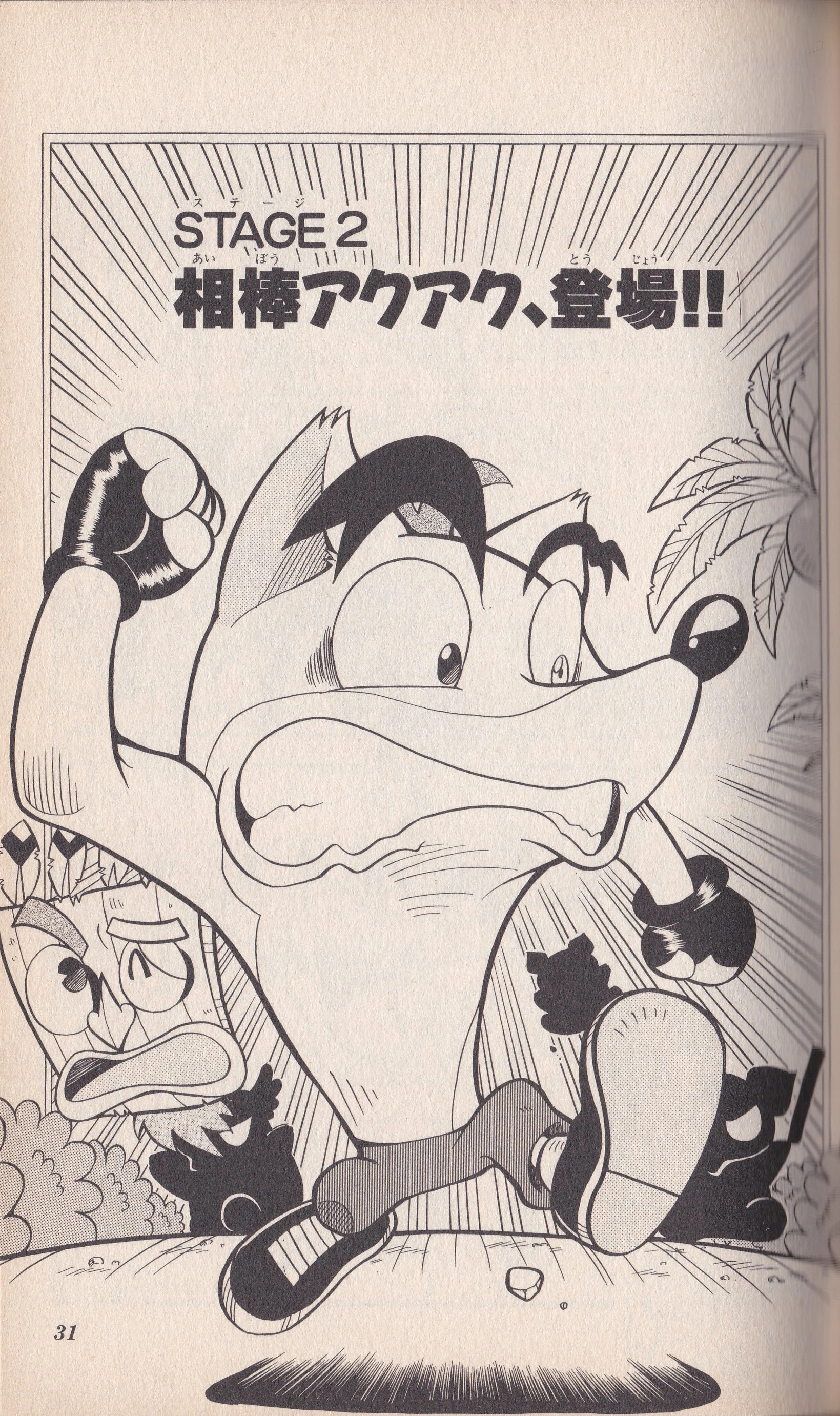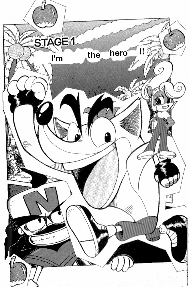 Crash Bandicoot: Dance! Then Jump! Na Daibōken (クラッシュ・バンディクー ダンス!でジャンプ!な大冒険) is a manga series published by Coro Coro Comics, and was drawn and written by Kawashima Ari, running from December 1997 to February 1999. The chapters were originally published in CoroCoro Comics magazine, and they were later reprinted into two manga volumes. Two final chapters were published in the magazine to tie in to Crash Bandicoot: Warped, which weren't given any reprints.[1] The manga was officially only published in Japanese, though an English fan-translation by FierceTheBandit (credited as Fiercey-Kun) and SnowLady4Ever can be easily found online.