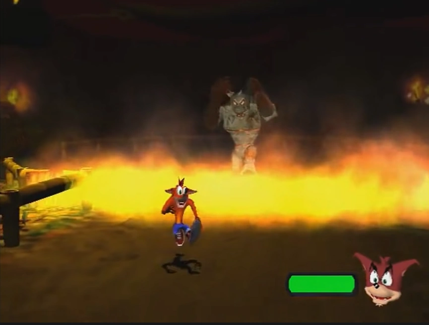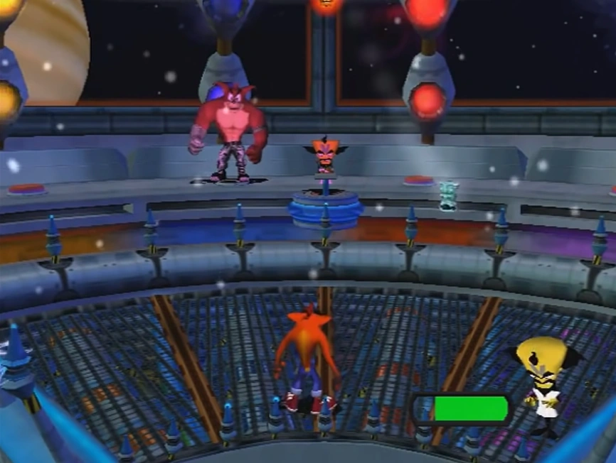 - The Xbox version has an invisible barrier that prevents Crash from walking on the upper bar of the arena, which could be used on other versions to avoid the ice, fire and laser attacks.
