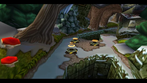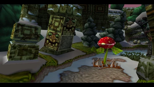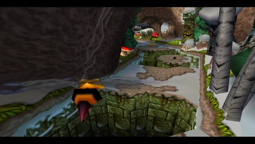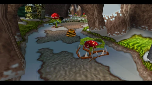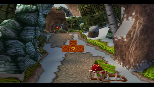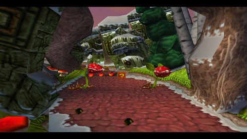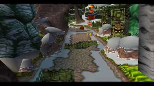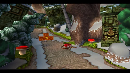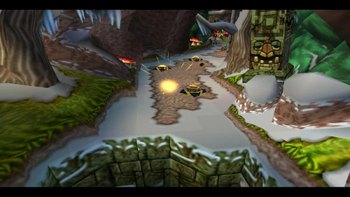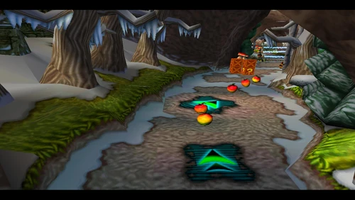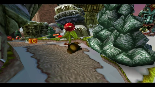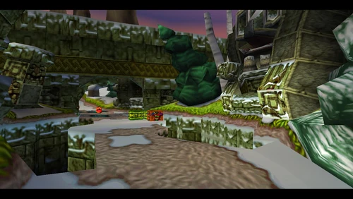 Diggin' It is the seventeenth level and the second level in the fourth warp room in Crash Bandicoot 2: Cortex Strikes Back and the N. Sane Trilogy remake of the second game. Crash finds himself in a snowy environment similar to the boulder chase levels, but it's not boulders that are in the level - it's snow-dwelling bees. Bees will go down to a simple spin attack, so they're not a huge factor here. Crash should be far more careful of the unbeatable sentient statues. There are also mallet-wielding lumberjack lab assistants and red spitter plants, which spit grenade-like seeds and will only fall to a belly flop or a spin from underground.