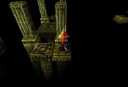 Jaws of Darkness is the twenty-sixth level (including boss fights) and is the ninth level of the third island in Crash Bandicoot and the N. Sane Trilogy remake of the first game. The level takes place under Castle Cortex and is a major death-trap for trespassers trying to enter. It is the second and last ancient temple type of level. It is also the second and last stage in the game with a Cortex bonus round and key, which unlocks the secret level Fumbling in the Dark. The blue gem from Toxic Waste is required to clear this stage with its hidden clear gem. One of the Cortex bonus round tokens is in a hidden area, where platforms appear when Crash lands on the spot. Similar to in Temple Ruins and The High Road, a wumpa above a hole is a hint that there is a hidden path.