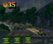 - In the Japanese version, this level's name is "It's Safari Park... Elephant?". However, the player is chased by rhinos rather than elephants.