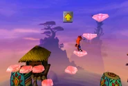 This level features a secret area, required to get all the crates in this level. Said area is notable for its structure, as it's only made of a few, thin clouds that Crash can walk on, as well as for being the best way to see this environment's beautiful background: a view of the other two islands, seen at sunset. Crash will need the red gem from Slippery Climb (or The Lost City in the Japanese version).