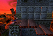 Sunset Vista takes place at the site of ancient ruins like in The Lost City. Sunset Vista is filled with many traps and obstacles that often require Crash to time his jumps. Some of the obstacles include flaming platforms and blocks that try and push Crash off the path. In addition, the level is also filled with bats and lizards that are often a part of a puzzle in different areas of the level. Crash must traverse up three levels of this level before reaching his portal. On the upper floor of this level, Crash can collect three Cortex tokens to unlock a rare Cortex bonus round.