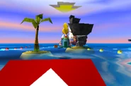 This level once again features Coco cruising the water on her nifty high-tech jet ski, avoiding pirate lab assistants and bombs as she searches for the crystal.