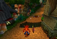- In the first five Crash platforming games, this is the only level 4 that does not contain a chase sequence. In Crash Bandicoot, Crash is chased by a boulder in the level Boulders. In Crash Bandicoot: Warped, Crash is chased by a triceratops in the level Bone Yard. In Crash Bandicoot: The Wrath of Cortex, Crash is chased by a dragon in the level Wizards and Lizards. In Crash Bandicoot: The Huge Adventure, Crash and Polar are chased by a yeti in the level Frostbite Cavern.