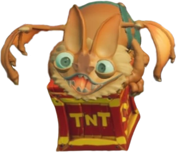 Wumpashine Carriers fly back and forth in a set pattern, attempting to drop either a TNT or nitro crate onto Dingodile's head. They can be defeated with TNT or by jumping on their heads. They appear in Home Cookin', No Dillo Dallying and Run It Bayou.