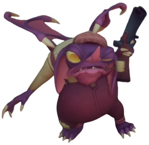 Regular Wumpashiners are stout, purple bats carrying shotguns that fire mosquitos. The blast can destroy large crates and explosives. After firing, the Wumpashiner may step behind nearby large crates for cover. Dingodile can defeat them with either a spin, a jump, or TNT. They appear in Home Cookin', No Dillo Dallying and Run It Bayou.